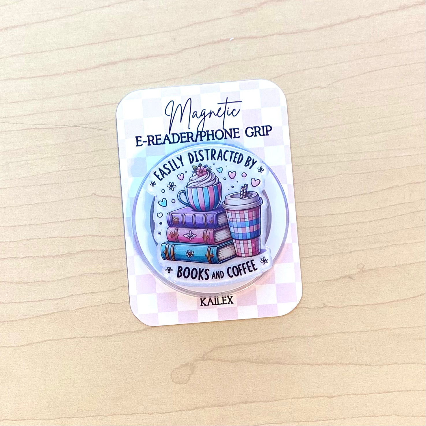 Easily Distracted By Books and Coffee Adhesive/Magnetic E-Reader/Phone Grip